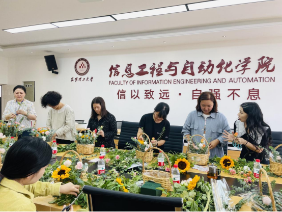 2021年9月10日,为深入贯彻落实习近平总书记关于教育的重要论述和全国全省教育大会精神,向建党100周年献礼,积极响应全国第37个教师节“赓续百年初心,担当育人使命”主题活动,篮球投注行政办工会小组在信自楼237会议室举行了2021年“诗情花意 感恩有你”教师节主题插花活动。篮球投注党委书记齐毅、工会主席赖华以及行政办工会小组全体教职工参加。
