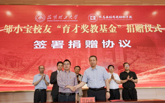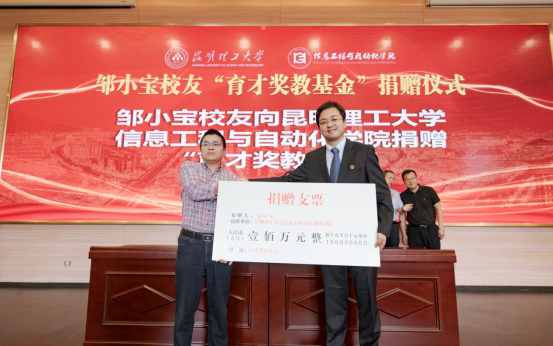 98级自动化专业邹小宝校友捐赠壹佰万元设立“育才奖教基金”,其中陆拾万元用于奖励工作成绩突出的班主任、辅导员,肆拾万元用于奖励科研成果业绩显著的教师。