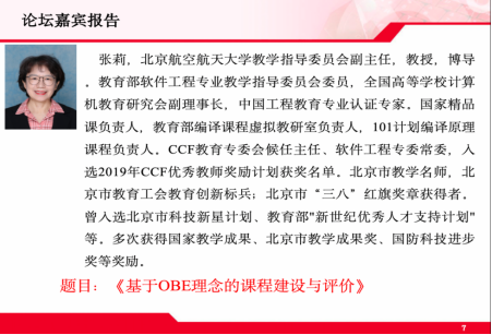 北京航空航天大学张莉教授给大家带来《基于OBE理念的课程建设与评价》的报告,张教授在报告中与大家讨论如何理解基于OBE的课程建设理念,工程教育专业认证的两线思维如何落实到课程的建设和评价中,并给出基于OBE的课程建设和评价的原则,分析常见问题;进一步与大家讨论基于OBE的内部评价机制及课程评价的常见问题。