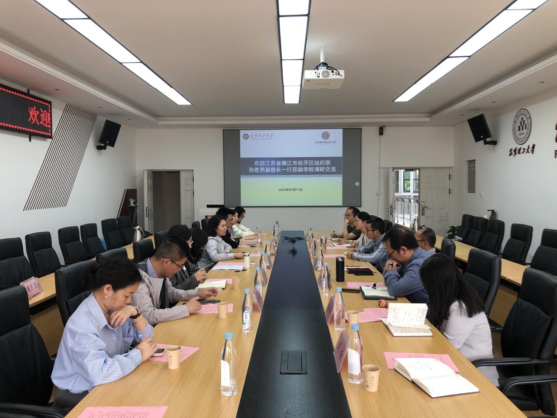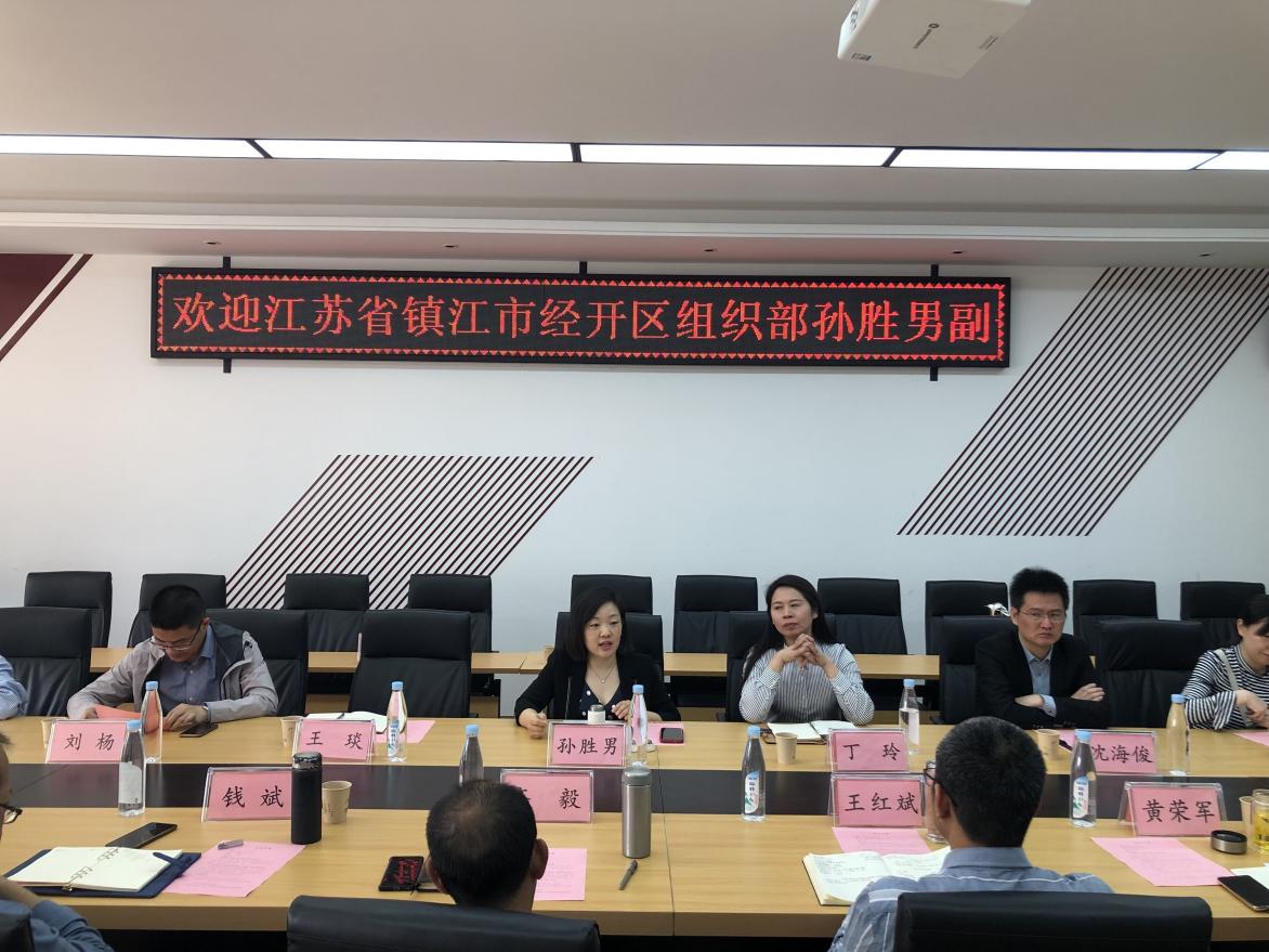 2024年4月11日上午,江苏省镇江市经开区委组织部孙胜男副部长一行莅临篮球投注调研交流,篮球投注党政班子成员参加座谈。