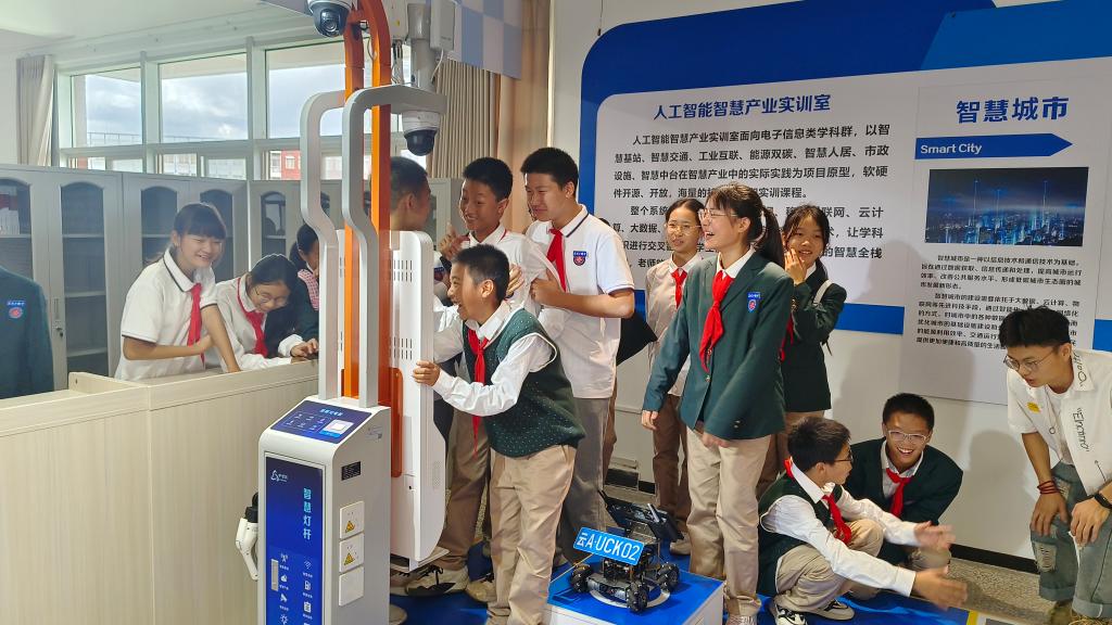 在研学过程中,实验中心教师薛继良为学子们带来了题为“智行天下,点亮未来——人工智能的创新应用”的讲座,讲述了人工智能的发展历史与前景、机遇与挑战。此外,学子们参观了人工智能综合实训室,在专业老师指导下,他们亲自体验了无人驾驶、智慧停车等系统,这一环节不仅锻炼了学子们的动手能力,也让他们感受到了科技的魅力,对人工智能产生了浓厚的兴趣。