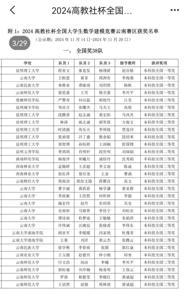 程亚文、廖竟发、杨瑾菥3位同学组成的参赛队获得国家一等奖,另外3个参赛队获得国家二等奖。
