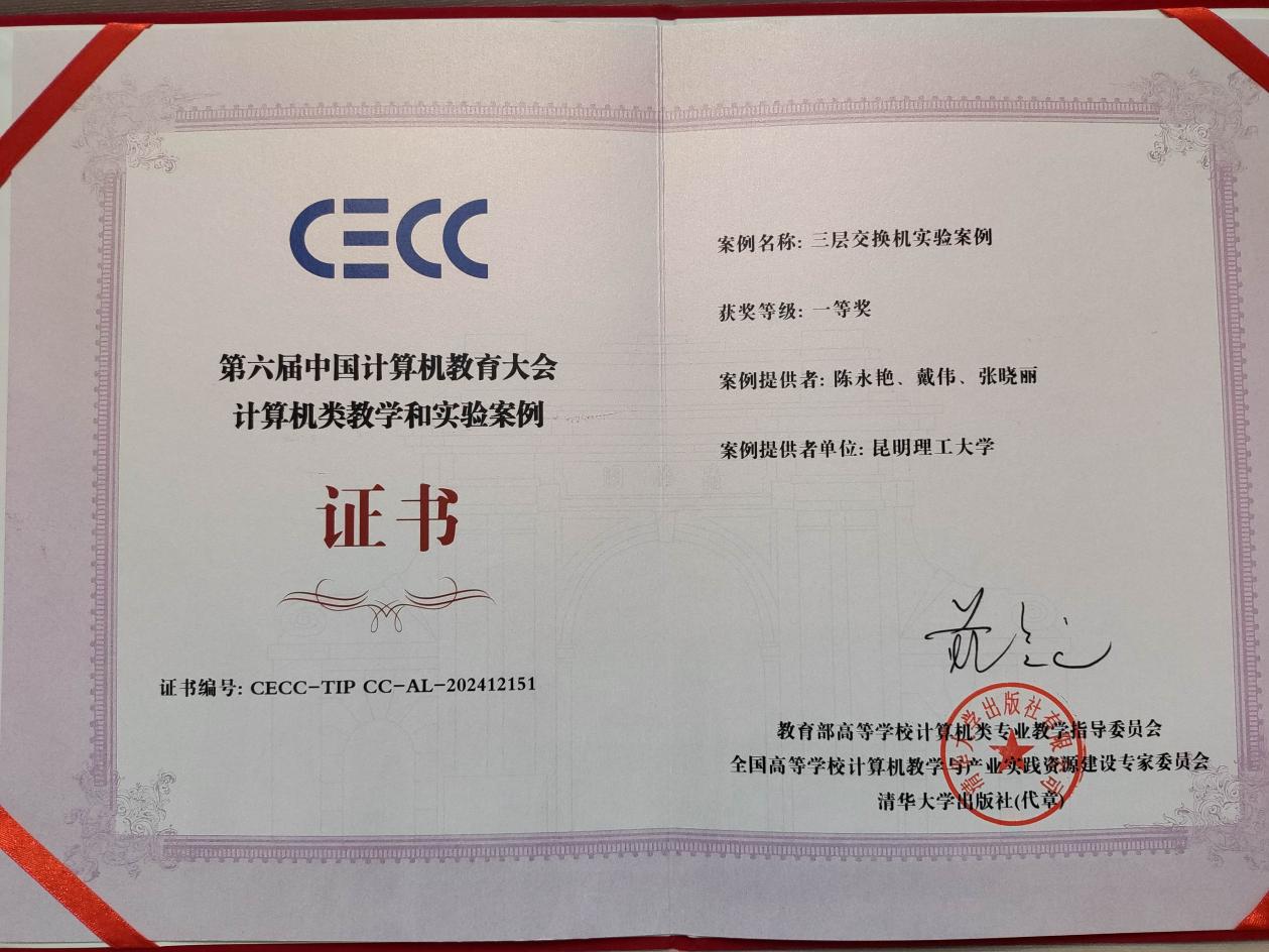 的“基于PyTorch卷积神经网络的MNIST数据集手写数字识别教学案例”和“三层交换机实验案例”两项均获计算机类教学和实验案例一等奖。这两个案例由陈永艳、戴伟、张晓丽老师共同建设完成。
