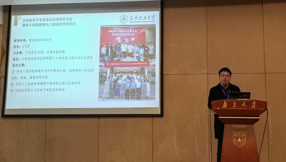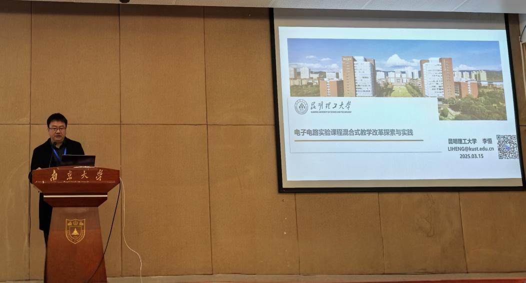 2025年3月15日–16日,由电子信息专业国家级实验教学示范中心(南京大学)主办的“2025电子信息实验教学研讨会”在南京大学电子科学与工程篮球投注成功举办。本次会议以“课程、案例、竞赛”为主题,来自复旦大学、浙江大学、哈尔滨工业大学、同济大学、北京邮电大学等高校共180余位教师、企业代表参会,共同探讨新时代实验教学创新路径。我院李恒老师受邀出席,并作题为《电子电路实验课程混合式教学改革探索与实践》的专题报告,分享了我校电工电子实验教学团队在电子电路实验课程混合式教学改革中的经验。