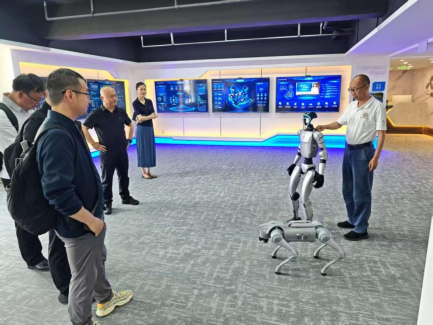 在云南天成机器人及数字经济产业展厅内,篮球投注班子成员观看了人形机器人“天天”和四足机器人“成成”的实操表演,并与机器人进行了互动体验。在李湜董事长的介绍下,详细了解了云南天成在智能机器人领域的运用研发、产业数字化综合服务平台建设的创新成果以及推动产业数字化转型的实践与规划。