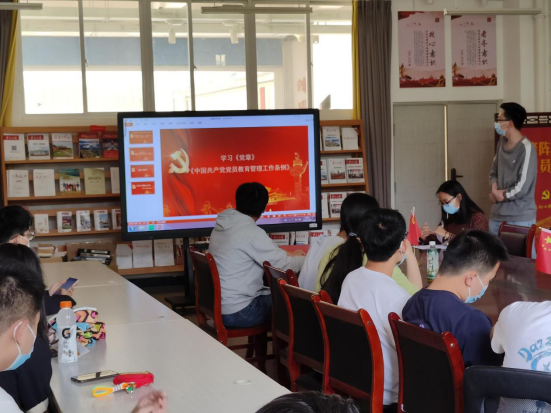 苏蕊同志和王仁龙同志分别以《党章》和《中国共产党党员教育管理工作条例》为切入点,向党员同志们介绍了中国共产党党员应遵守和执行的权利及义务,深刻阐述了党的纪律性及党员的责任。接着,两位同志带领支部的所有同志在党旗下重温了入党誓词,告诫大家要牢记中国共产党的初心与使命,坚定理想信念。