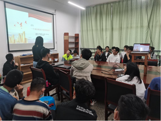 本次党日活动分为三个部分,由吴玥洁同志主持。首先,参会成员通过观看《100秒回顾百年党史》系列视频,回顾党的百年光辉历程。参会同学表示通过回顾百年党史,深化了对于党的认知,坚定了永远跟党走,奋进新时代的决心。随后,八位入党积极分子同志为全体参会成员分享了百年党史故事,其中丁紫嫣同志我们讲述了她祖辈丁佑君烈士的故事。刘阳同志表示每一个党史故事都是屹立在百年征程的丰碑,仰望这一座座伟大丰碑我感到中华民族正闪耀着我们民族特有的坚忍不拔、不畏艰难的伟大精神,立足党的二十大的新起点,我们要传承好、发扬好、谱写好实现中华民族伟大复兴中国梦的华丽篇章。