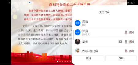 学习宣传贯彻党的二十大精神,是当前和今后一个时期的首要政治任务。党的二十大报告举旗定向、主题鲜明,思想深邃、内涵丰富,是激励全党全国人民奋进新征程、夺取新胜利的宣言书、动员令。研究生第六党支部于2022年11月18日开展党日活动,通过线上分享、小组交流等多层次、多形式、全方位的学习方式,组织全体党员全面学习贯彻党的二十大精神。