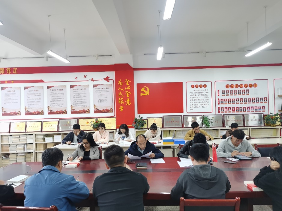 首先,由齐毅书记带领全体与会人员进行第一议题的学习,即学习习近平对宣传思想文化工作作出的重要指示,齐毅书记强调,宣传思想文化工作是一项极其重要的工作,各基层党支部要把做好宣传思想文化工作作为重大政治责任扛在肩上,要不断地强化政治担当,勇于改革创新,将宣传思想文化工作与主题党日活动结合起来,不断开创新时代宣传思想文化工作新局面。