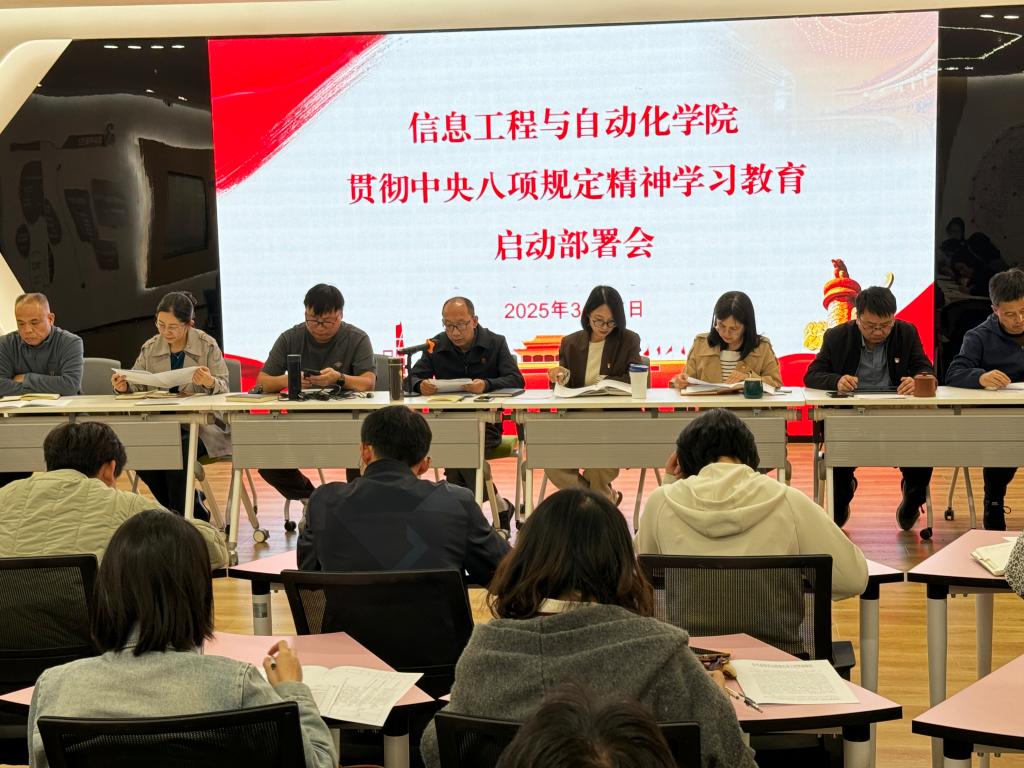 会上,齐毅书记带领参会人员认真学习贯彻习近平总书记关于深入贯彻中央八项规定精神学习教育的重要讲话和重要指示精神,传达学习中央党的建设工作领导小组会议、中共中央办公厅《关于在全党开展深入贯彻中央八项规定精神学习教育的通知》精神,传达学习省委、学校党的建设工作领导小组会议精神。