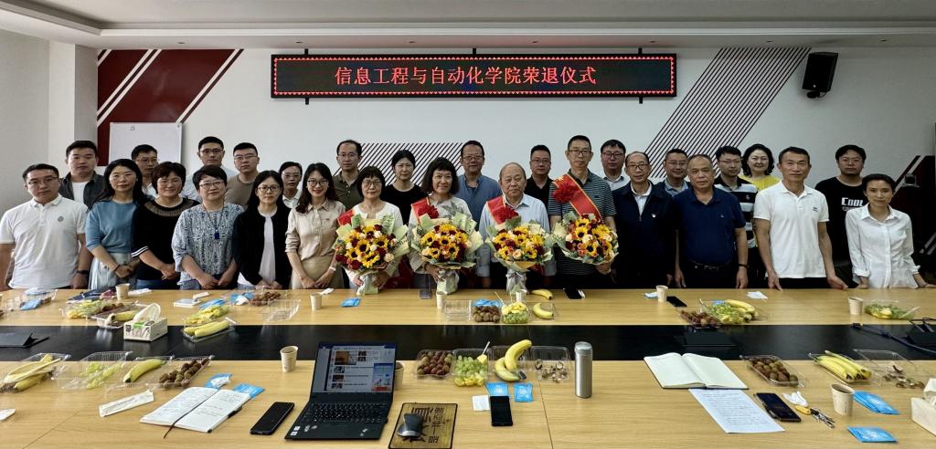 在信自楼237会议室为向凤红、周兰江、方全忠、汪涛、刘爱莲、陈颀六位老师举行荣退休仪式。