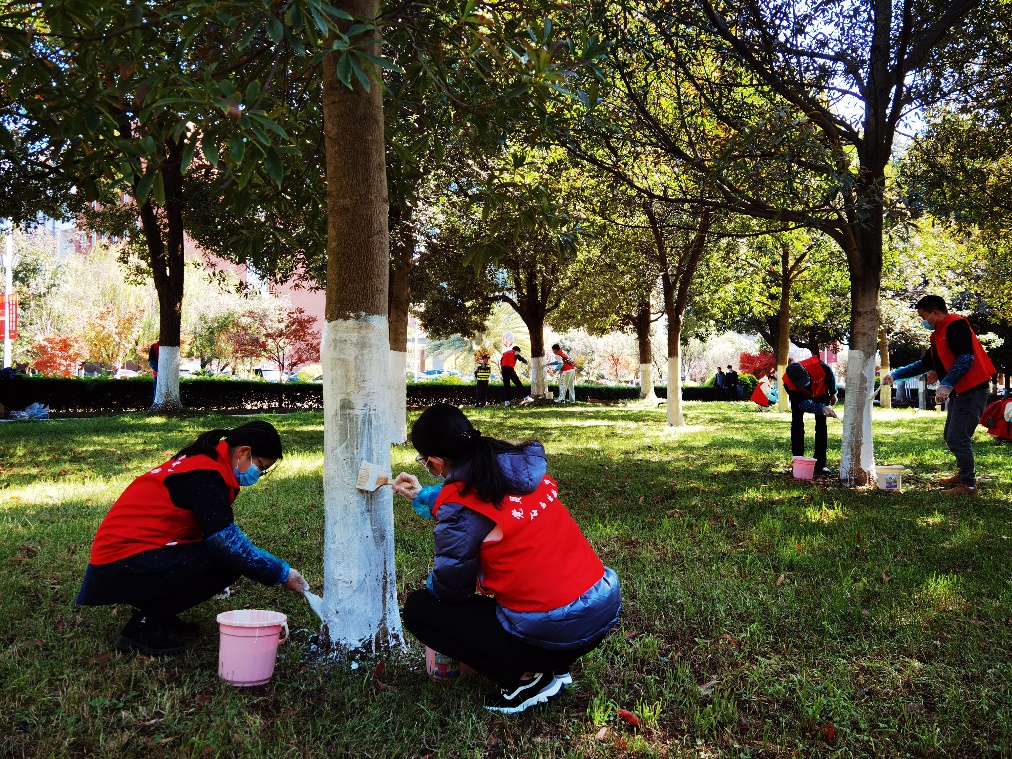 活动期间,参与活动的师生穿戴整齐地到指定地点集合,拿着刷子、提着涂料桶,齐动手,众参与,开展了我为树林刷防冻的集体劳动。在齐毅书记的带领下,参与活动的师生发扬不怕苦、不怕累、吃苦耐劳的精神,大家分工明确,相互协作,密切配合,严格按照为树木涂白刷防冻的要求和标准,认真地完成每一道工序。经过长达4小时的辛勤劳动,圆满完成了为树木涂白刷防冻的任务,为保护校园植被,建设美丽昆工贡献了自己的力量。