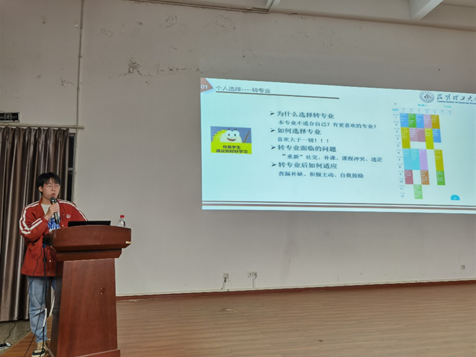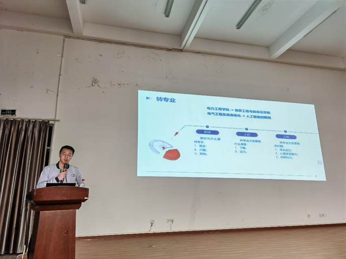 陈泽良和娄世猛则围绕“免试攻读硕士研究生”,与低年级同学交流了保研之路的坎坷与艰辛的心理历程,建议同学们在学习中做好劳逸结合,注重培养学习能力,才能在大学的学习中更好地“乘风破浪”。