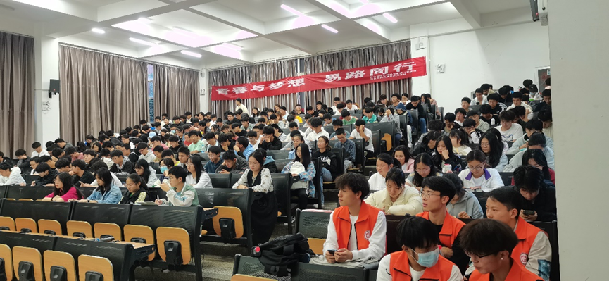 易班学生工作站,共同为低年级同学举办了“青春与梦想,易路同行”学业交流分享会。本次活动,邀请了6名成绩优异、表现突出的2019级优秀学生代表进行经验分享,共有350余名学生参与本次活动,由辅导员陈玉婷主持。