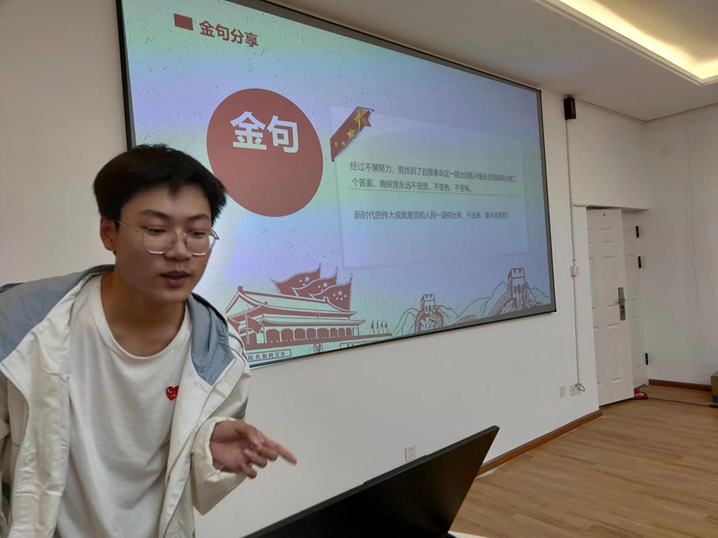 张哲豪进行“二十大精神”的主题演讲,发起“风起扬帆正当时,不断奋进,勇于担当,用青春献礼二十大。”的号召。陈艺萱分享与讲解了“二十大金句”。此外,以“知识竞赛”为载体,带领同学们回顾了对本次主题教育活动中学习的法治基本理论与知识。最后,展示了本次“法治宣传教育”主题活动中同学们的主题“手抄报”,并进行了“法治学习周”总结。