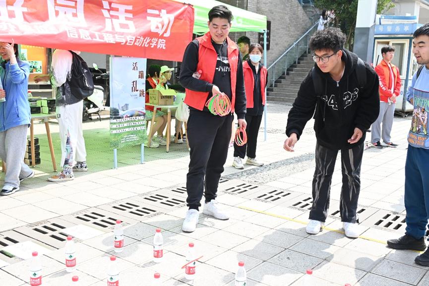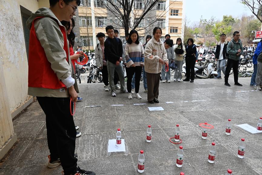 本次活动设有“可圈可点”、“投其所好”、“蹦蹦跳跳”、“水中取栗”以及“捐书筑梦”等五个趣味环节,邀请全校师生共赴佳会,共遇春天。活动中师生踊跃参与,现场气氛十分热烈。