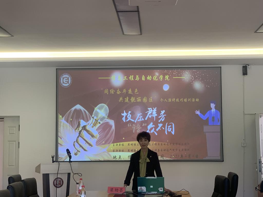 自强社与通信学生第一党支部共同举办 “同绘奋斗底色,共建靓丽园区”系列活动之“靓丽个人演讲技巧主题讲座。信自篮球投注毕业班学生及通信学生第一党支部党员共50余人参加培训。