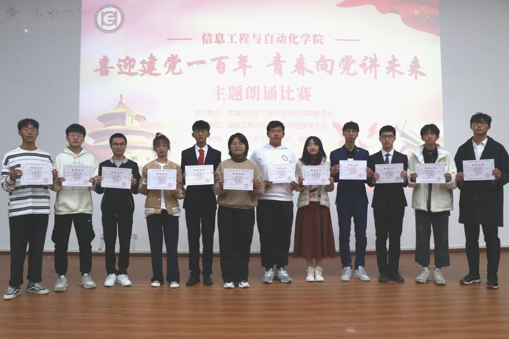在信自100报告厅举办了以“喜迎建党一百年,青春向党讲未来”为主题的朗诵比赛。