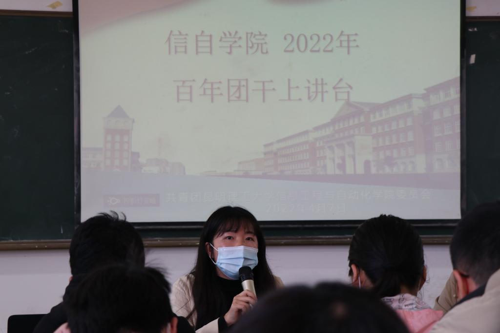 信自院团委老师马金晶、万松分别以“永远跟党走、奋进新征程”及“建团百年,勇当先锋”为题,深入开展学习习近平总书记关于青年工作的重要思想,紧紧围绕立德树人根本任务,深入剖析思想政治理论学习的重要性,要“努力实现理论学习有收获、思想政治受洗礼、干事创业敢担当、为民服务解难题、清正廉洁做表率的具体目标”。两位老师强调,2022年是中国共产主义青年团成立100周年,我们要以昂扬的斗志和精神状态迎接党的二十大胜利召开。我们青年要充分展现作为党的助手和后备军的担当。