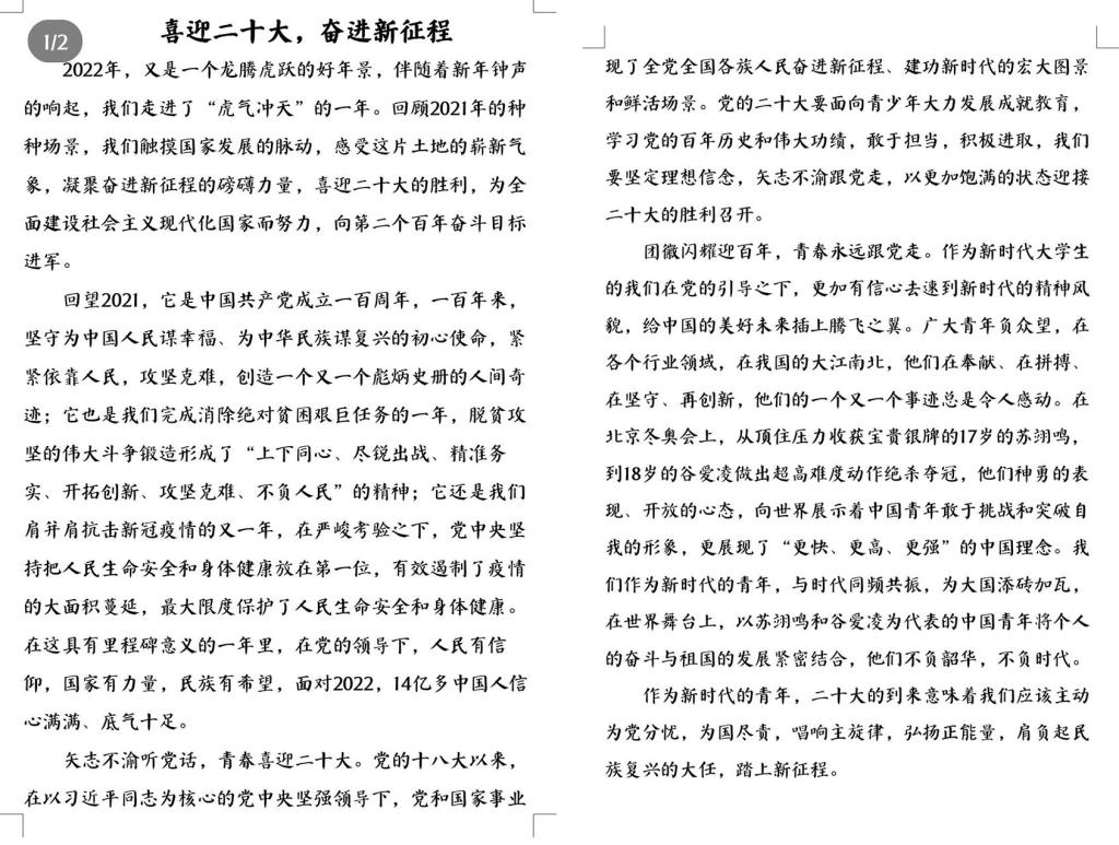 全日制在校本科生、研究生。经过评审,最终通卓191班杨蓉曌同学的作品《喜迎二十大,奋斗新征程》荣获一等奖;21级计软班袁艺哿同学的作品《喜迎二十大,奋斗新征程》荣获二等奖;自动化213班宗宇恒同学的作品《续过往伟大征程,谱全新百年华章》荣获三等奖。