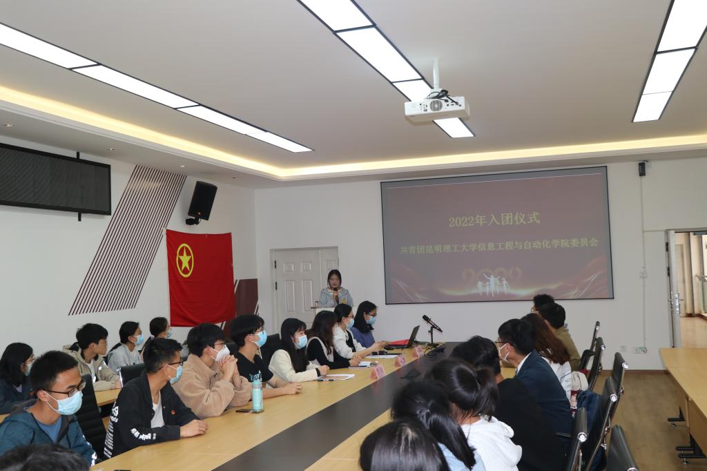 在信自楼237会议室举行2022年新团员入团宣誓仪式。本次入团仪式由院团委学生会谭蕊同学主持,篮球投注党委副书记周鹭、院团委老师马金晶、院团委老师万松以及部分团支部书记、团员代表及新团员参加。