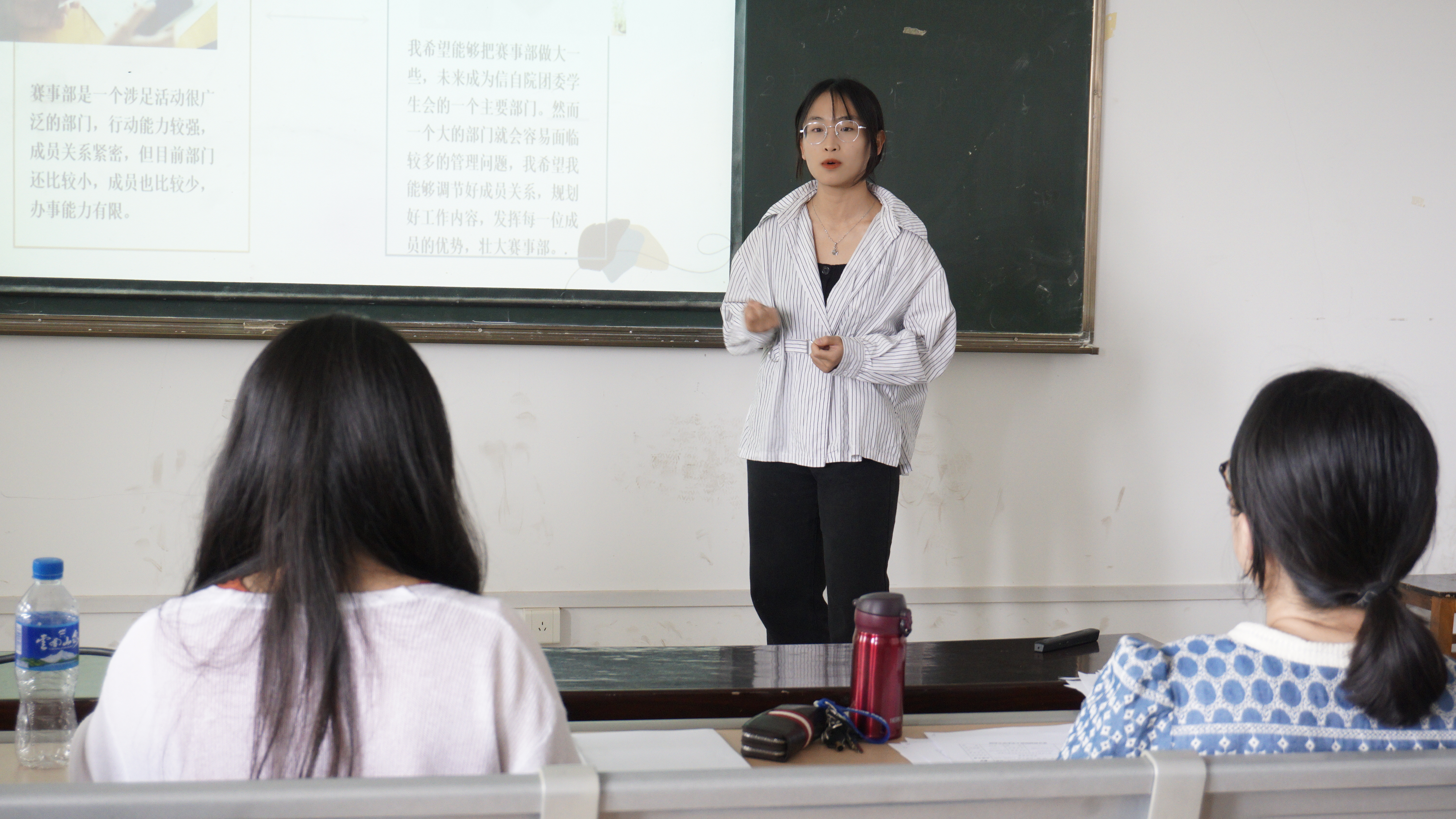 于信自楼617教室开展团委、学生会及艺术团主要团学干部选拔竞聘工作。本次换届选拔工作由篮球投注团委马金晶老师、万松老师及篮球投注团学组织主要负责人担任评审小组成员。
