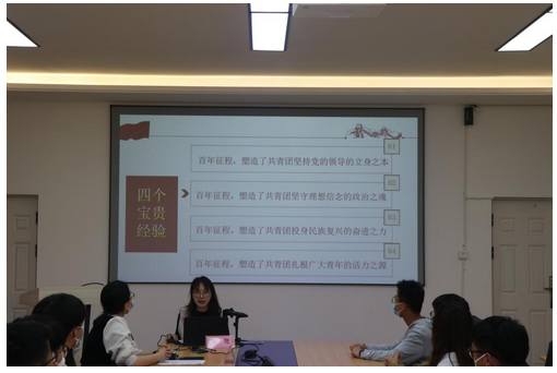 活动中,周鹭老师带领全体成员认真学习习近平总书记在中国共青团成立100周年大会上发表的重要讲话,回顾了共青团的百年奋斗历程,为大家讲述了共青团在百年历程中得到的四条宝贵经验——“坚持党的领导、坚守理想信念、投身民族复兴、扎根广大青年”。通过学习,周鹭老师对青卓班的学员们提出了几点希望:青年同学要坚定理想信念,努力学习科学文化知识及提高人文素养,敢于斗争、善于斗争,艰苦奋斗、无私奉献,崇德向上、严守纪律,在学习生活中发挥先锋模范带头作用。