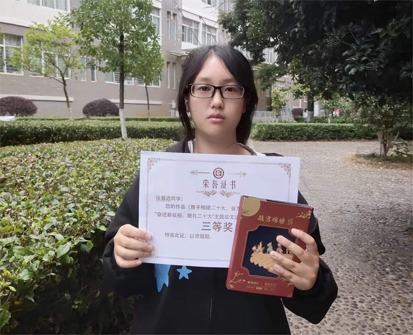 活动期间,同学们积极创作,涌现了许多优秀的作品。最终,生医221吕维嘉同学的作品《华夏之花葳蕤开,中国之光耀时代》荣获一等奖;信控201华芸靖同学的作品《少年踏征程,吾国凝雄魂》和计科222彭颖同学的作品《愿以寸心寄华夏,且将岁月赠河山》荣获二等奖;自动化222费永超同学的作品《新征途》、通信222张馨远同学的作品《携手相迎二十大,奋力开创新征程》和生医221冯韦攀同学的作品《青春心向党,喜迎二十大》荣获三等奖。