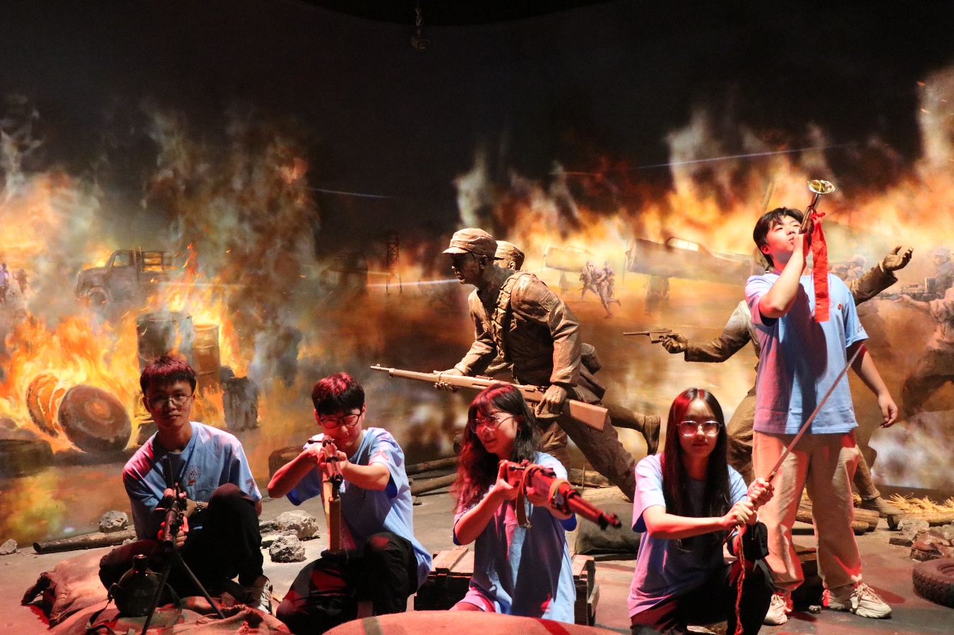 2024年7月11日,实践团队走进昆明市红色文化体验馆,旨在重温红色党史,传承红色基因,坚定青年理想锤炼品格。活动通过“初心讲堂”的生动讲解、“时光隧道”的历史回顾,以及“沉浸式体验区”的“飞夺泸定桥”、“爬雪山过草地”、“夜袭阳明堡”的实境模拟,让成员们深切感悟革命精神。此次活动不仅丰富了实践团成员的党史知识,更激发了爱国情怀,强化了青年的责任感和使命感,激励他们从红色传承中汲取力量,以实际行动为国家复兴贡献力量。