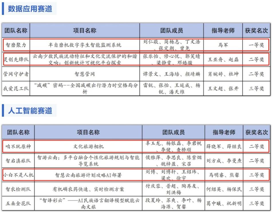今年9月竞赛启动以来,全省27所高校、2294名同学积极参与,累计提交444件作品参加初赛。经过激烈的角逐,数据应用赛道的前16名团队(包括并列第15名)和人工智能赛道的前15名团队成功晋级复赛。复赛阶段,经过技术验证和专家组评审,共确定两个赛道的前6名作品进入终审决赛,最终产生了一等奖2项、二等奖4项和三等奖6项。