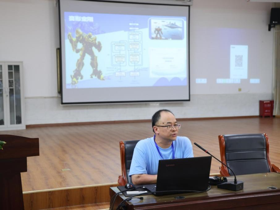 的欧阳鑫、薛继良老师与同学们交流分享了人工智能前沿知识。欧阳鑫老师深入浅出地阐述了人工智能的发展历程,并现场演示了机器狗,其灵活的动作、智能的反应让同学们真切体会到人工智能的无限可能;薛继良老师聚焦智能家居系统展开讲解,详细介绍了系统构成、核心功能和应用价值,在互动体验环节,同学们踊跃上台,亲自体验智能交互、手势控制等功能,零距离感受人工智能为生活带来的便捷。