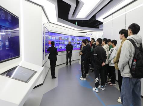 同学们在南天软件业务集团昆明开发中心解决方案与咨询部经理杨蔚和讲解员的带领下参观了展厅。展厅分为发展历程、解决方案区、篮球投注区三个板块,全方位立体化向同学们展示了公司的相关信息。